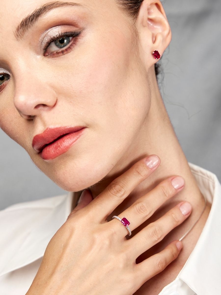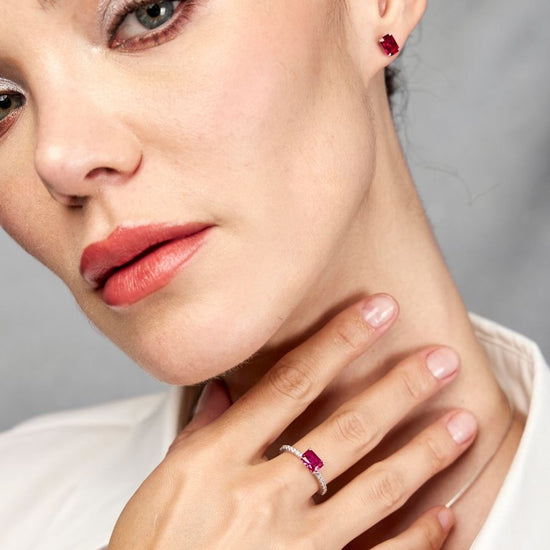 Anillo Antares con Rubi en Plata 925 y Baño de Oro Blanco de 18 kt.
