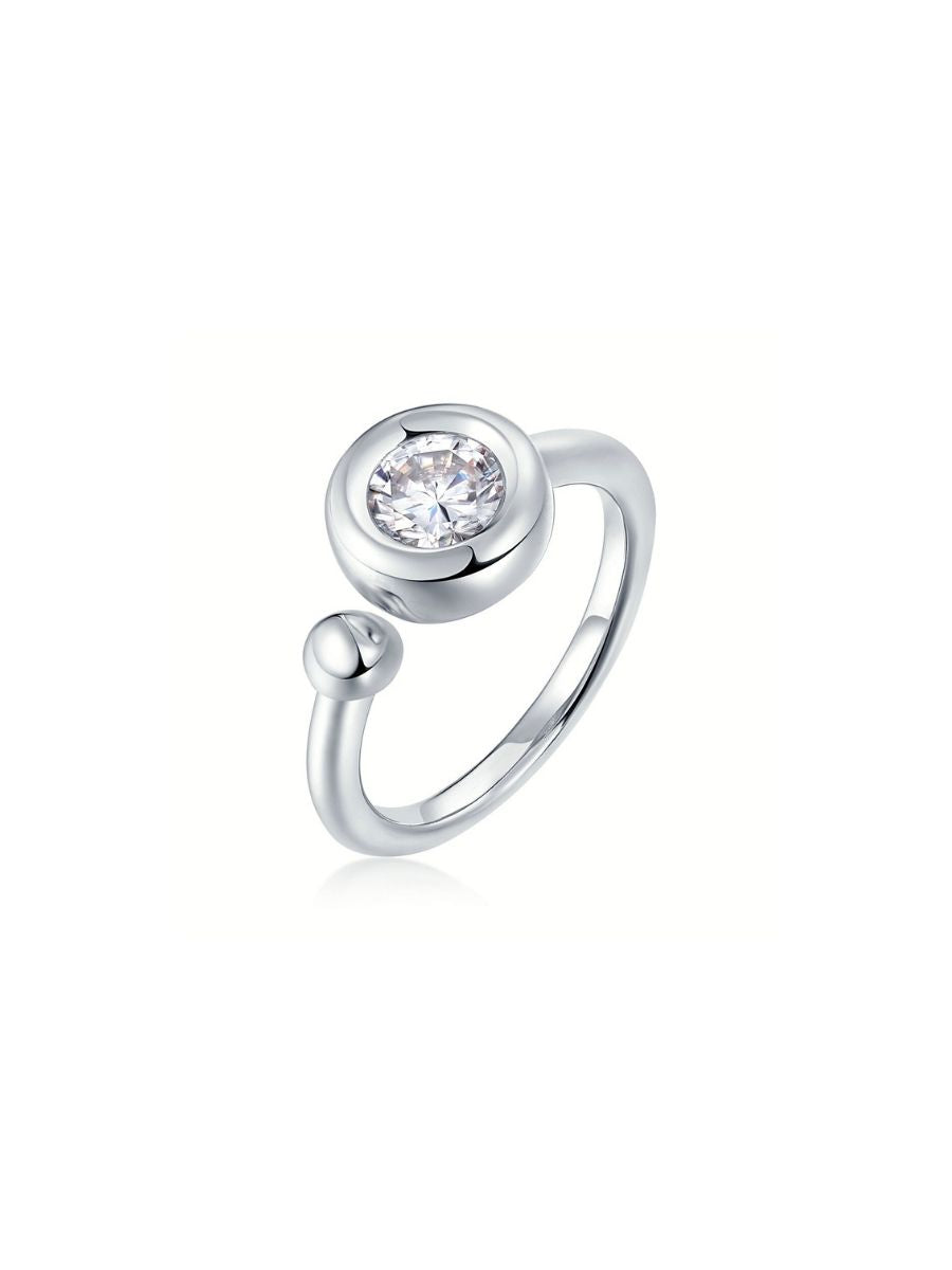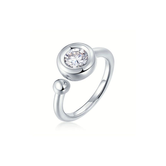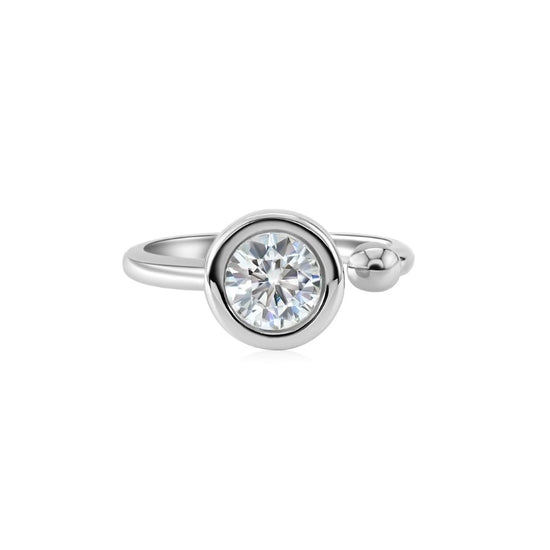Anillo Auri con Diamante Moissanite en Plata 925 y Baño de Oro Blanco de 18 kt.