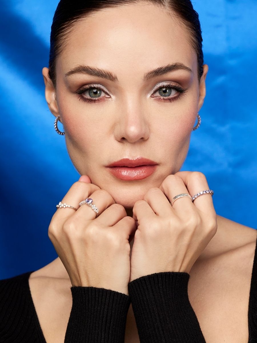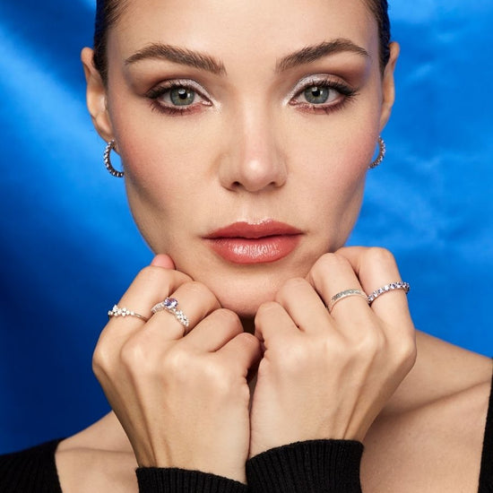 El suave tono azul celeste de sus piedras evoca la serenidad del cielo al amanecer, recordándonos que algunas conexiones, momentos y sentimientos están hechos para durar. Atemporal y sofisticada, esta joya es el complemento perfecto para llevar sola o apilada, añadiendo un brillo infinito a cada instante.