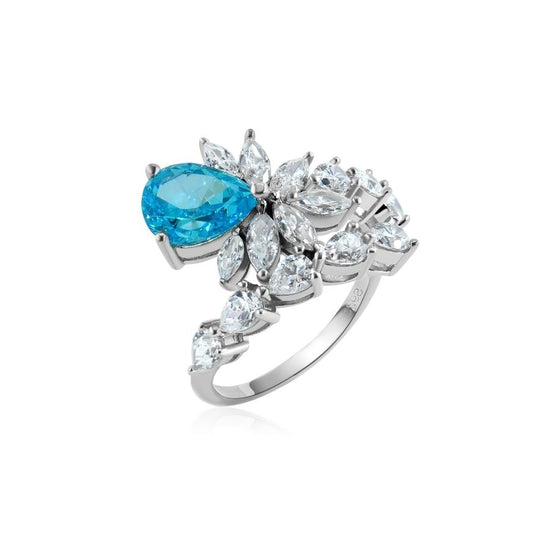 Anillo Lyra con Zirconia Crushed Ice en Plata 925 y Baño de Oro Blanco de 18 kt.