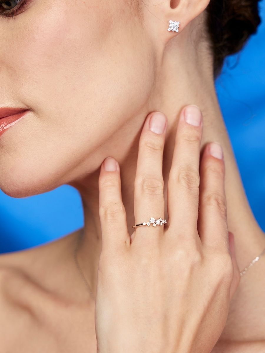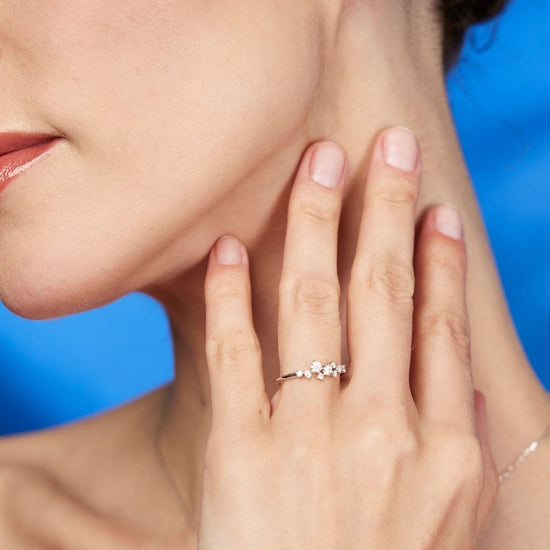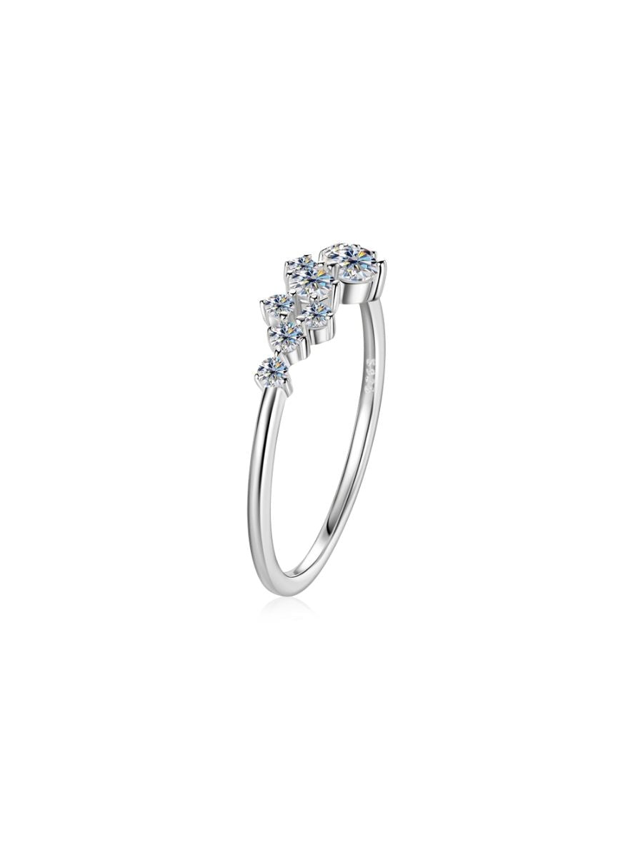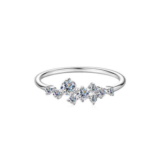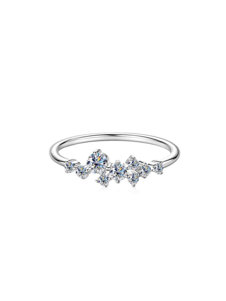 Anillo Vía Láctea con Diamantes Moissanite en Plata 925 y Baño de Oro Blanco de 18 kt.