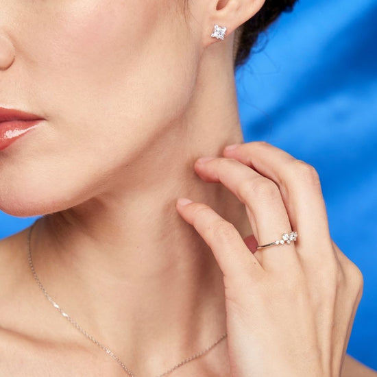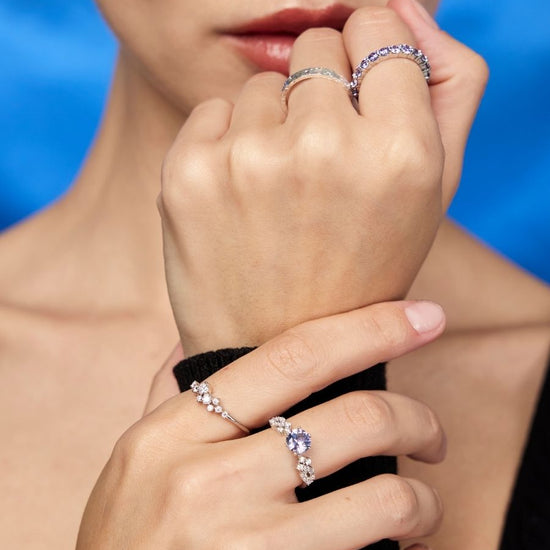 Un destello eterno, inspirado en la majestuosidad del cosmos. Este anillo, elaborado en plata ley 925 con baño de oro blanco de 18 kt, presenta nueve diamantes moissanite, colocados en una franja sutilmente ondulada que imita el flujo de la Vía Láctea. Su diseño refleja el movimiento de las estrellas en el firmamento, creando un efecto luminoso y envolvente con cada reflejo de luz. Atemporal y sofisticado, es una pieza versátil que se adapta a cualquier ocasión.