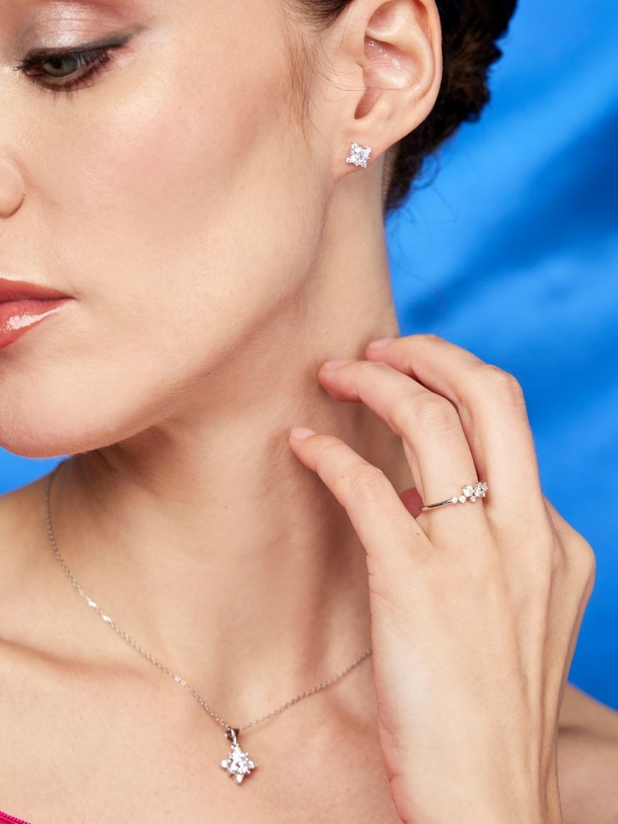 Cada pieza Celeia está hecha a mano con plata ley 925, baño de oro de 18 quilates y piedras preciosas naturales o cultivadas en laboratorio cuidadosamente seleccionadas.