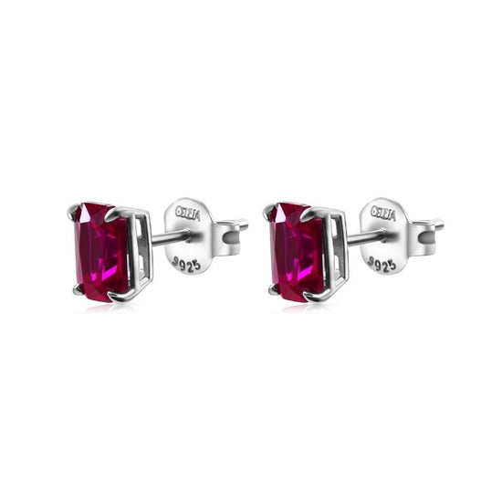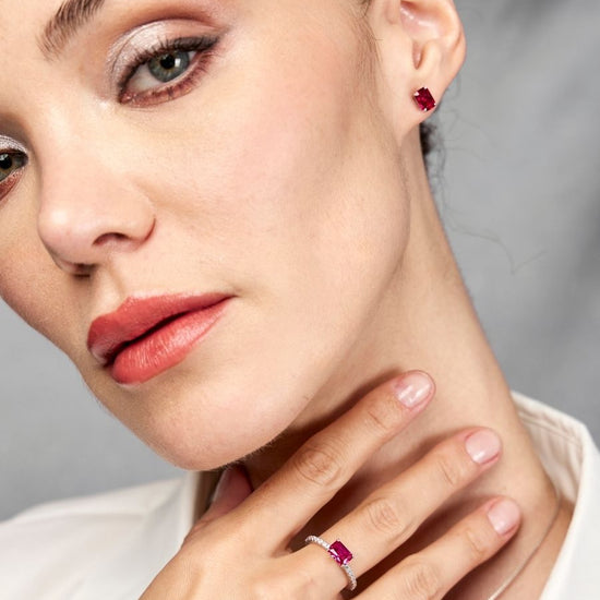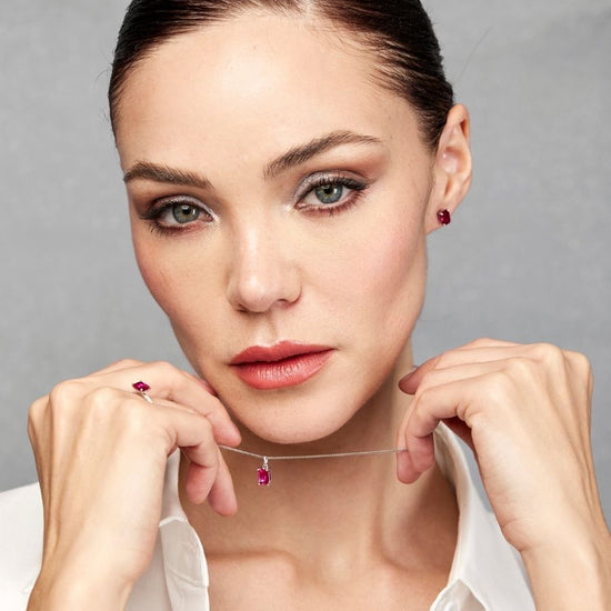 Aretes Antares con Rubi en Plata 925 y Baño de Oro Blanco de 18 Kt.