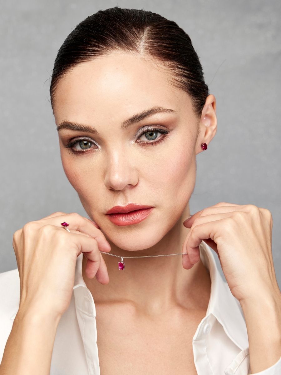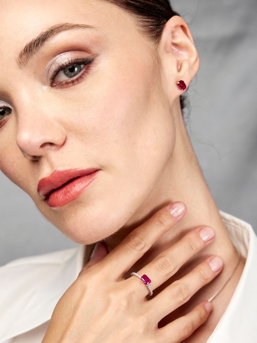 Inspirados en la majestuosidad de Antares, la estrella más brillante de la constelación de Escorpio, los Aretes Antares irradian elegancia y sofisticación. Cada arete presenta un rubí solitario de 1 ct que brilla intensamente, simbolizando pasión y fuerza interior. Elaborados en plata ley 925 con baño de oro blanco de 18 kt, estos aretes destacan por su diseño minimalista, permitiendo que la belleza natural del rubí sea la protagonista absoluta.