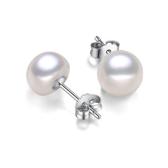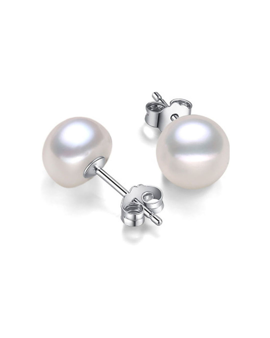 Aretes Boton de Perla de Agua Dulce en Plata 925