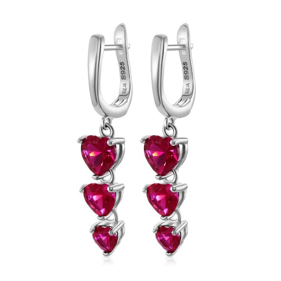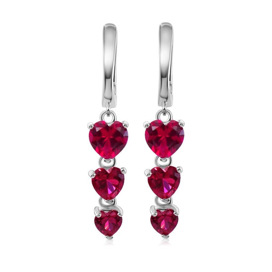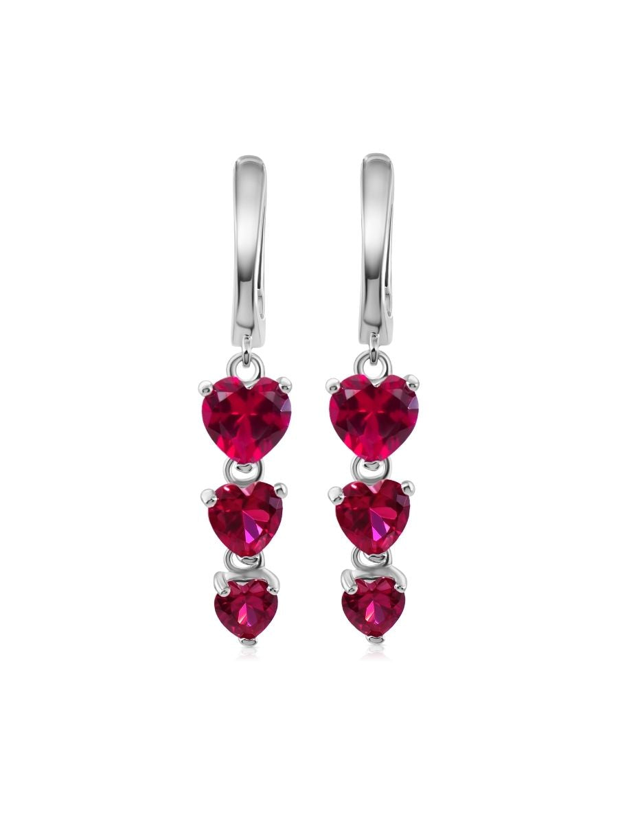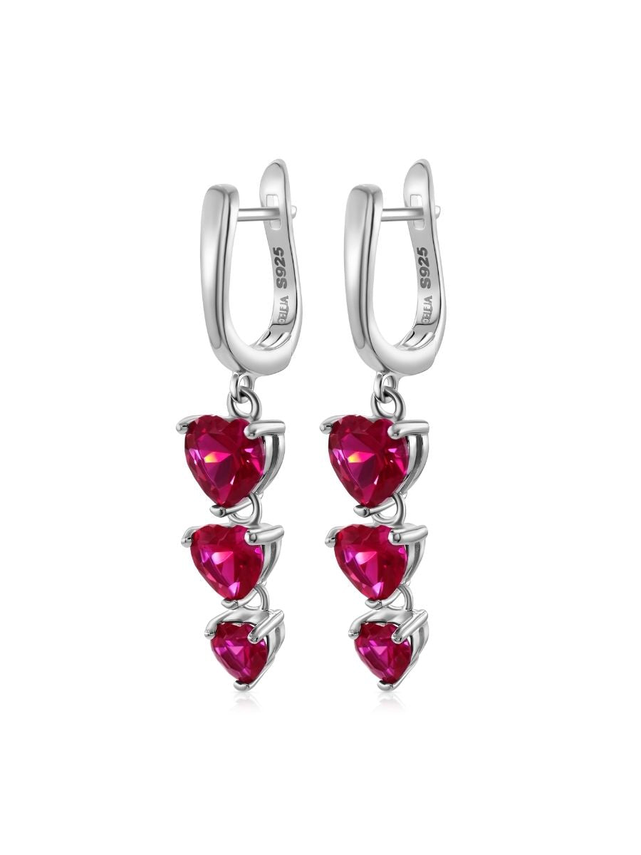 Aretes Corazones con Rubi en Plata 925 y Baño de Oro Blanco de 18kt.