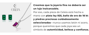 Cada pieza Celeia está hecha a mano con plata ley 925, baño de oro de 18 quilates y piedras preciosas naturales o cultivadas en laboratorio cuidadosamente seleccionadas.