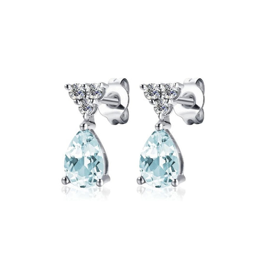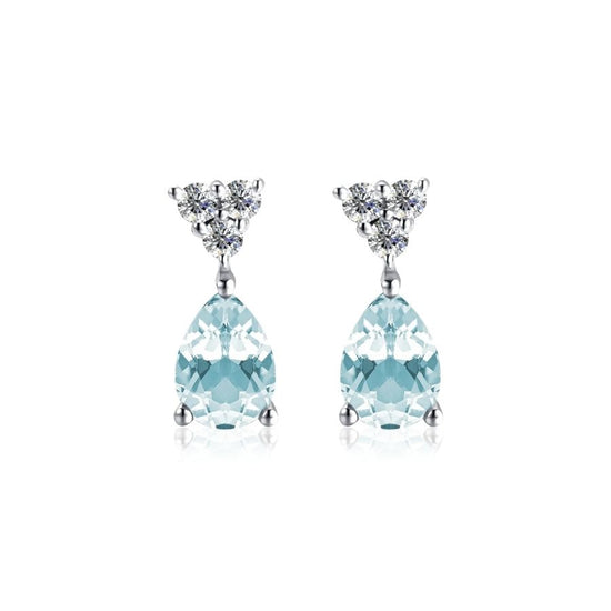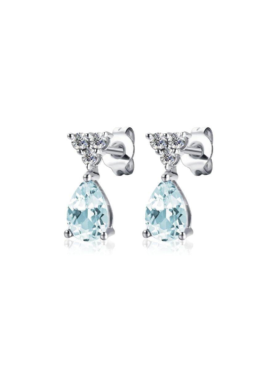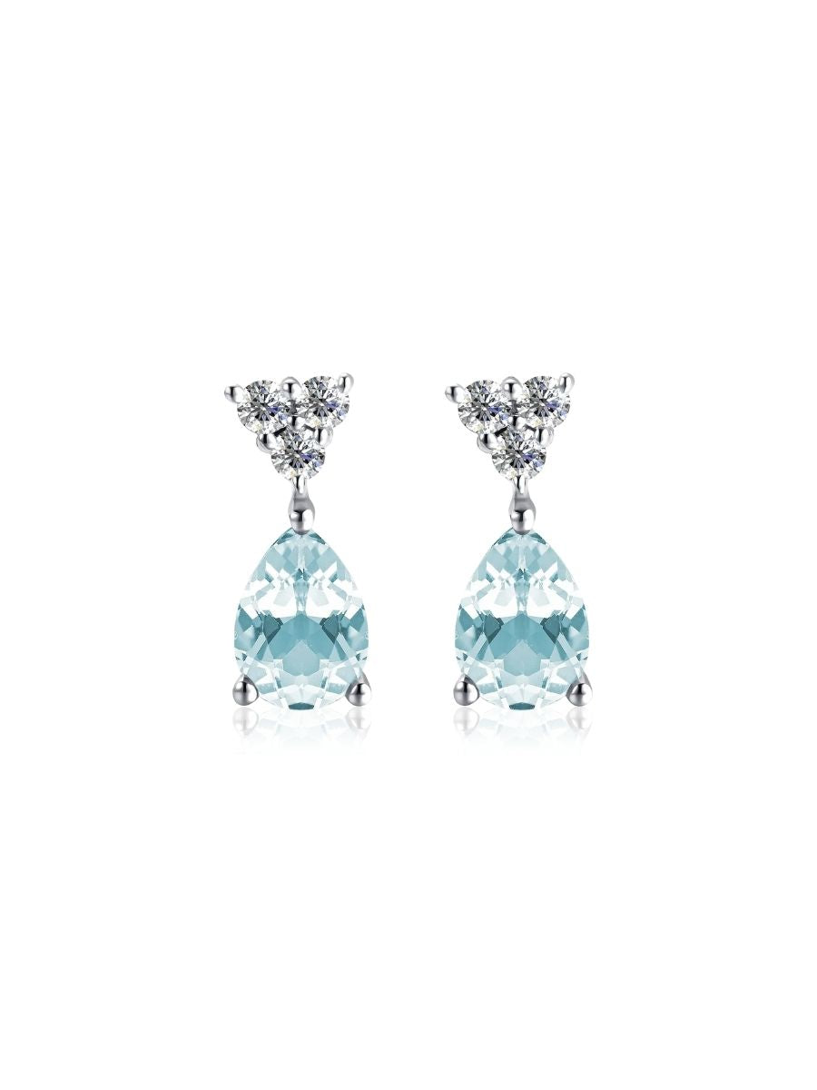 Aretes Lluvia de Luz con Topacio Sky Blue en Plata 925 y Baño de Oro Blanco de 18 kt.