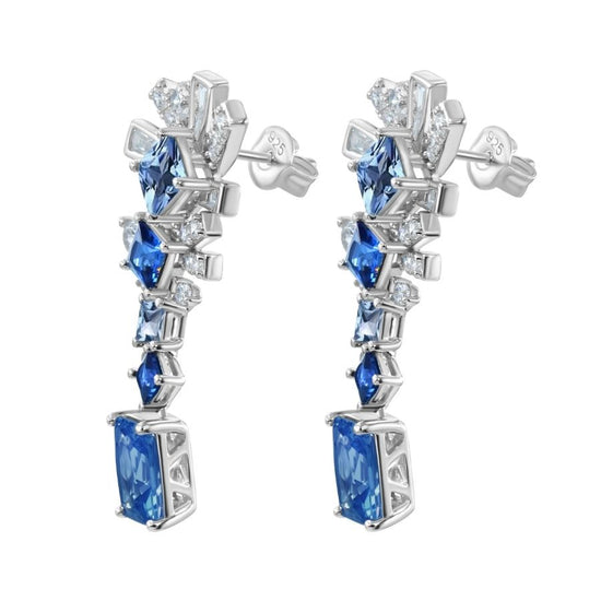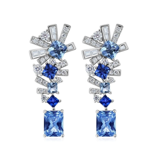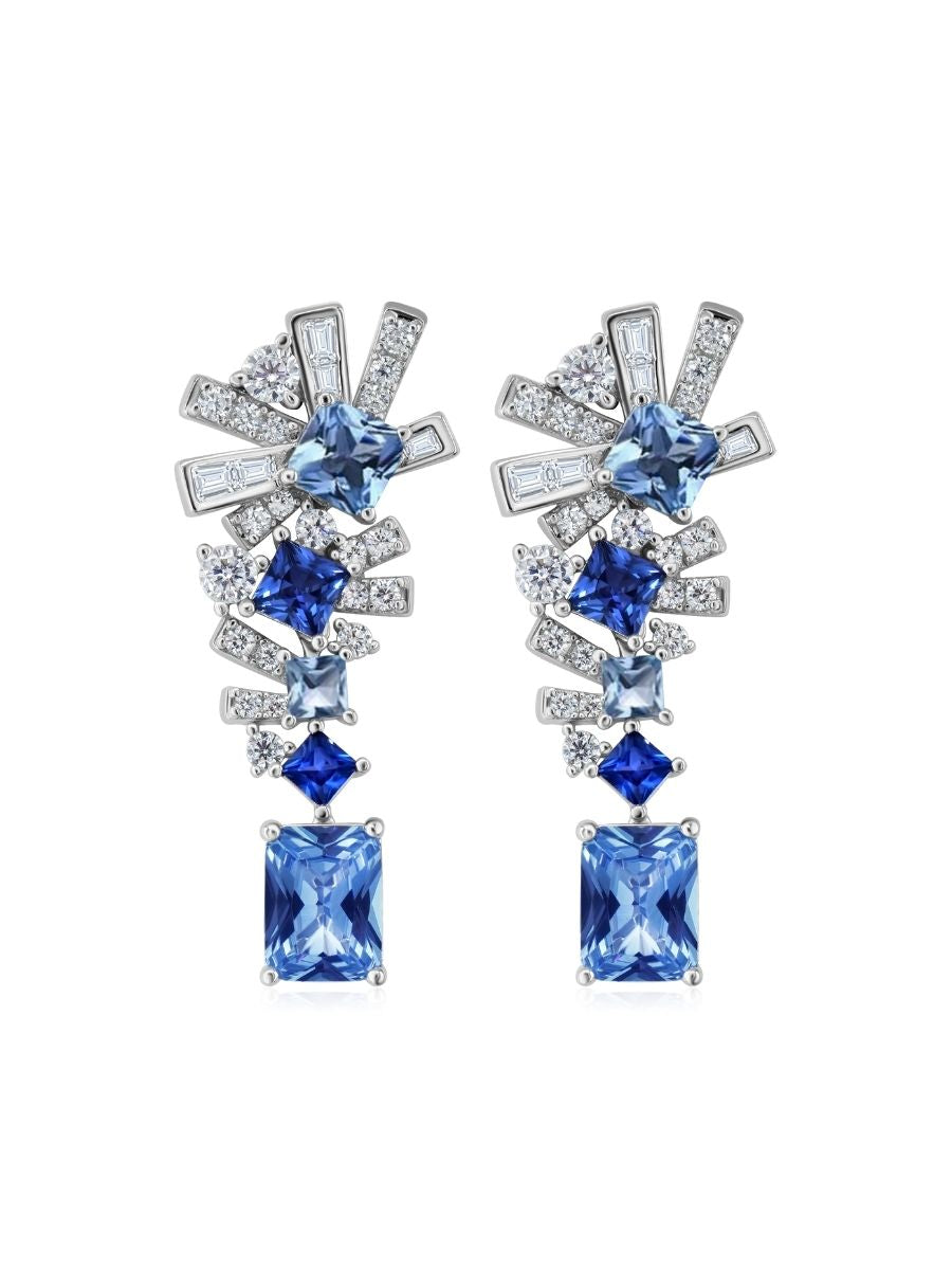 Elaborados en plata ley 925 con baño de oro blanco de 18 kt, presentan un fascinante juego de contrastes de piedras preciosas entre el profundo resplandor del zafiro y la intensidad de la espinela, creando un brillo que cobra vida con cada movimiento. A su alrededor, delicadas zirconias 5A, la más alta calidad en su tipo, añaden luminosidad y profundidad a la composición, reflejando la magia de una noche estrellada.
