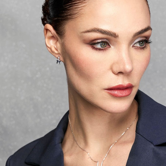 Un resplandor que siempre cautiva. Estos aretes, elaborados en plata ley 925 con baño de oro blanco de 18 kt, presentan una alejandrita, una piedra única que cambia de azul a morado con la luz, ofreciendo destellos brillantes que capturan la esencia de la estrella Nova. Encima de ella, delicadas zirconias añaden aún más brillo, creando una joya que ilumina tu rostro con cada movimiento. Su diseño atemporal los hace perfectos para usar todos los días, pero con la versatilidad de complementar cualquier look con un toque elegante.