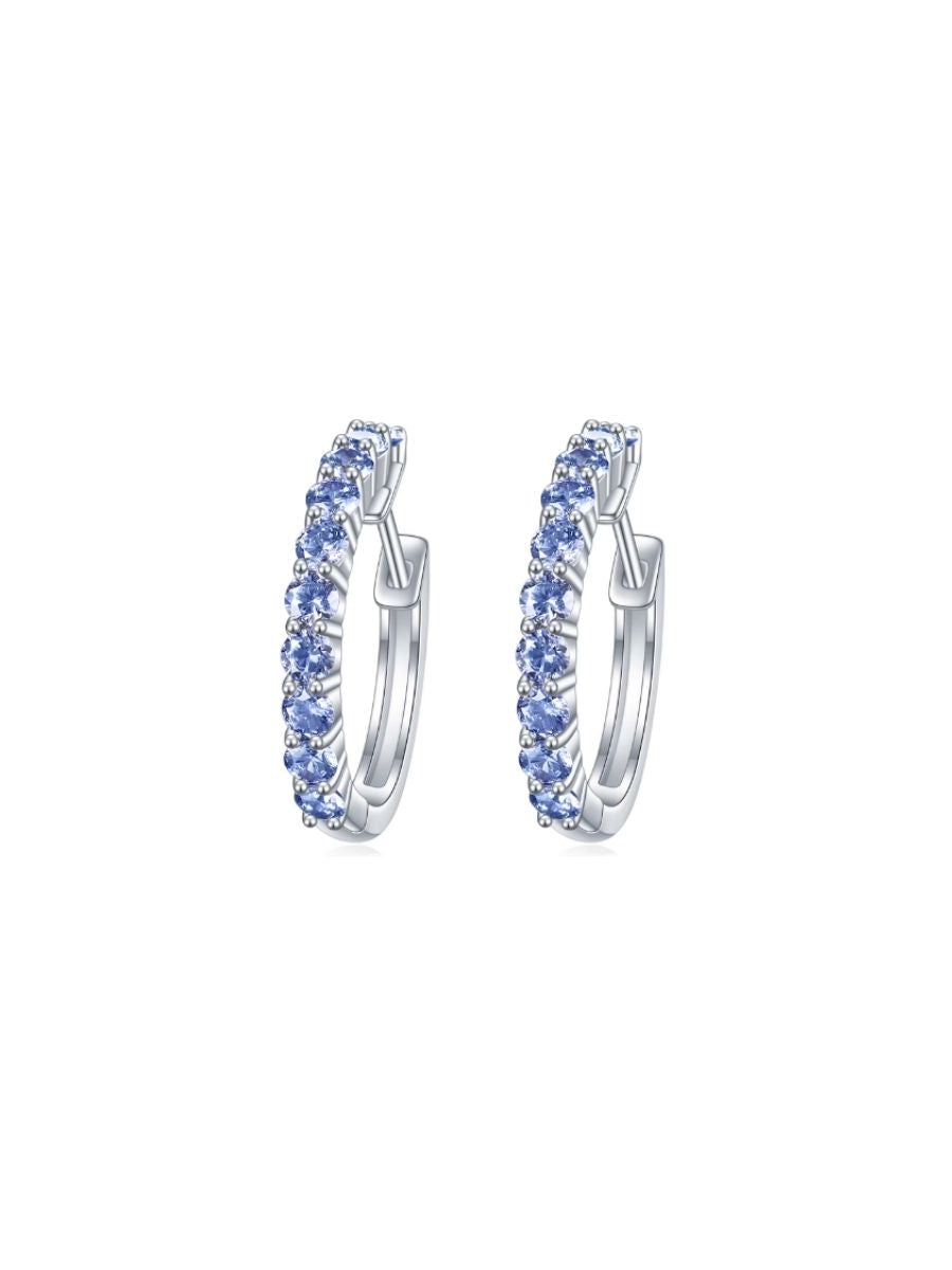Arracadas Eternidad con Zirconia Azul Celeste en Plata 925 y Baño de Oro Blanco de 18 kt.