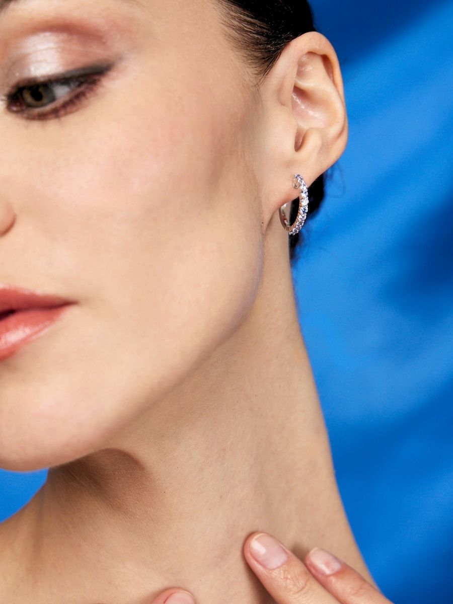 Un resplandor infinito que envuelve cada movimiento. Estas arracadas, elaboradas en plata ley 925, están adornadas con zirconias 5A azul celeste, la más alta calidad en su tipo, reflejando la luz con una intensidad sutil y etérea. Añadiendo un toque de frescura y sofisticación a cualquier estilo.