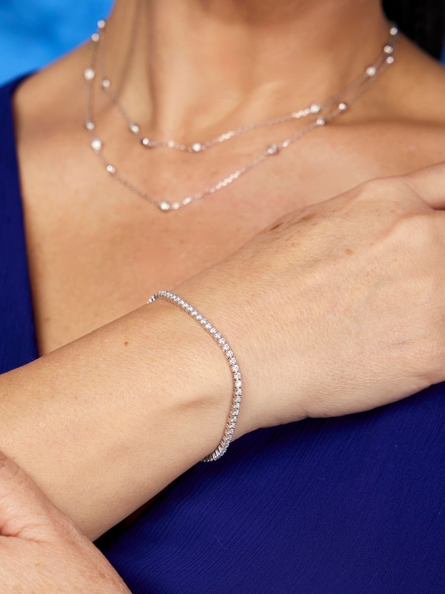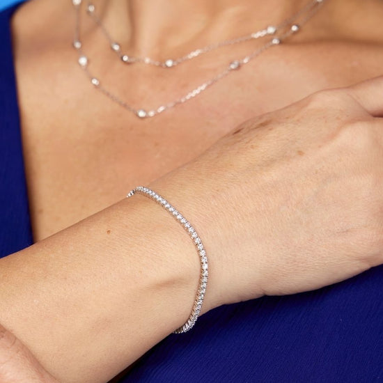 Brazalete Tennis 2mm con Diamante Moissanite en Plata 925 y Baño de Oro Blanco de 18 kt.