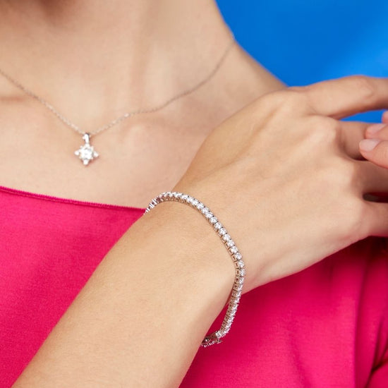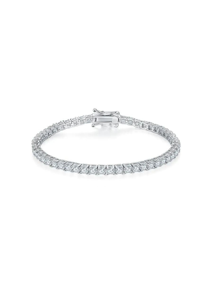 Brazalete Tennis 3mm con Diamante Moissanite en Plata 925 y Baño de Oro Blanco de 18 kt.