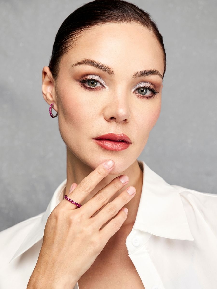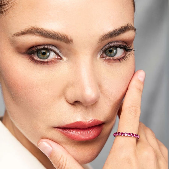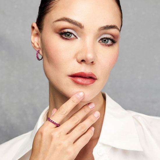 Un círculo sin fin, un símbolo de luz y significado eterno. Esta churumbela, elaborada en plata ley 925, está adornada con rubí cultivado en laboratorio, la máxima calidad en su tipo, cuidadosamente colocadas para reflejar la luz con cada movimiento.