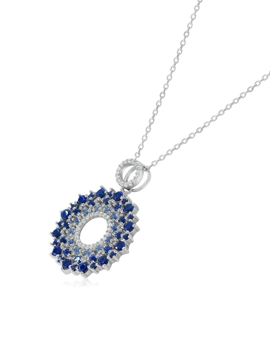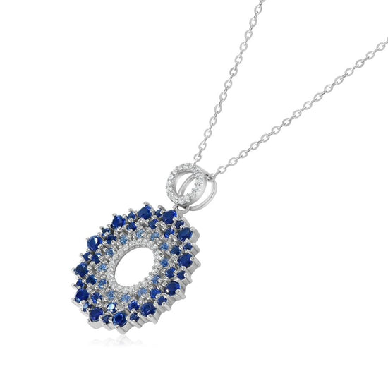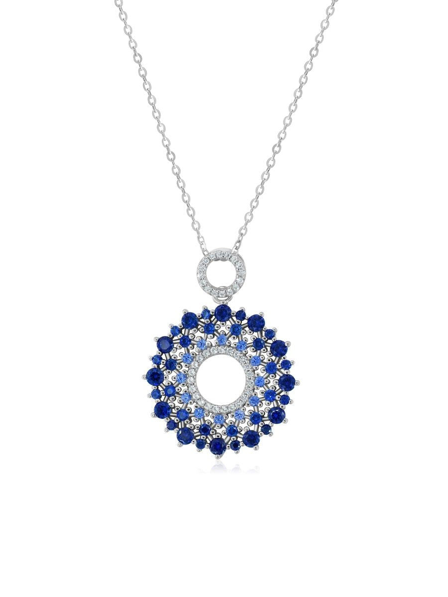 El collar está adornado con 36 zafiros azules, que fueron meticulosamente seleccionados y representan la profundidad y brillo del cielo nocturno. Intercaladas entre los zafiros, 38 zirconias 5A de impecable claridad aportan destellos de luz, simulando estrellas brillando en el universo. Los zafiros son los protagonistas de esta joya que irradia un brillo intenso y cautivador y perfecto para realzar cualquier atuendo y ocasión especial.