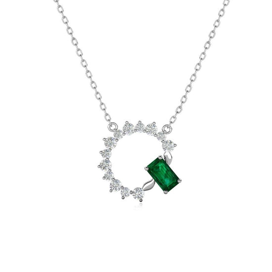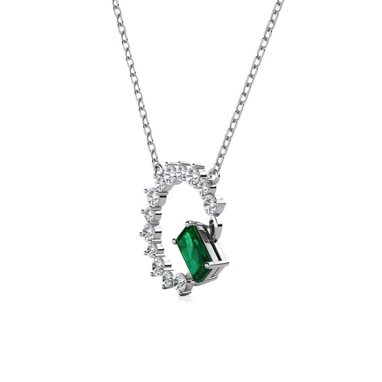 Collar Aurora con Esmeralda en Plata 925 y Baño de Oro Blanco de 18 kt.