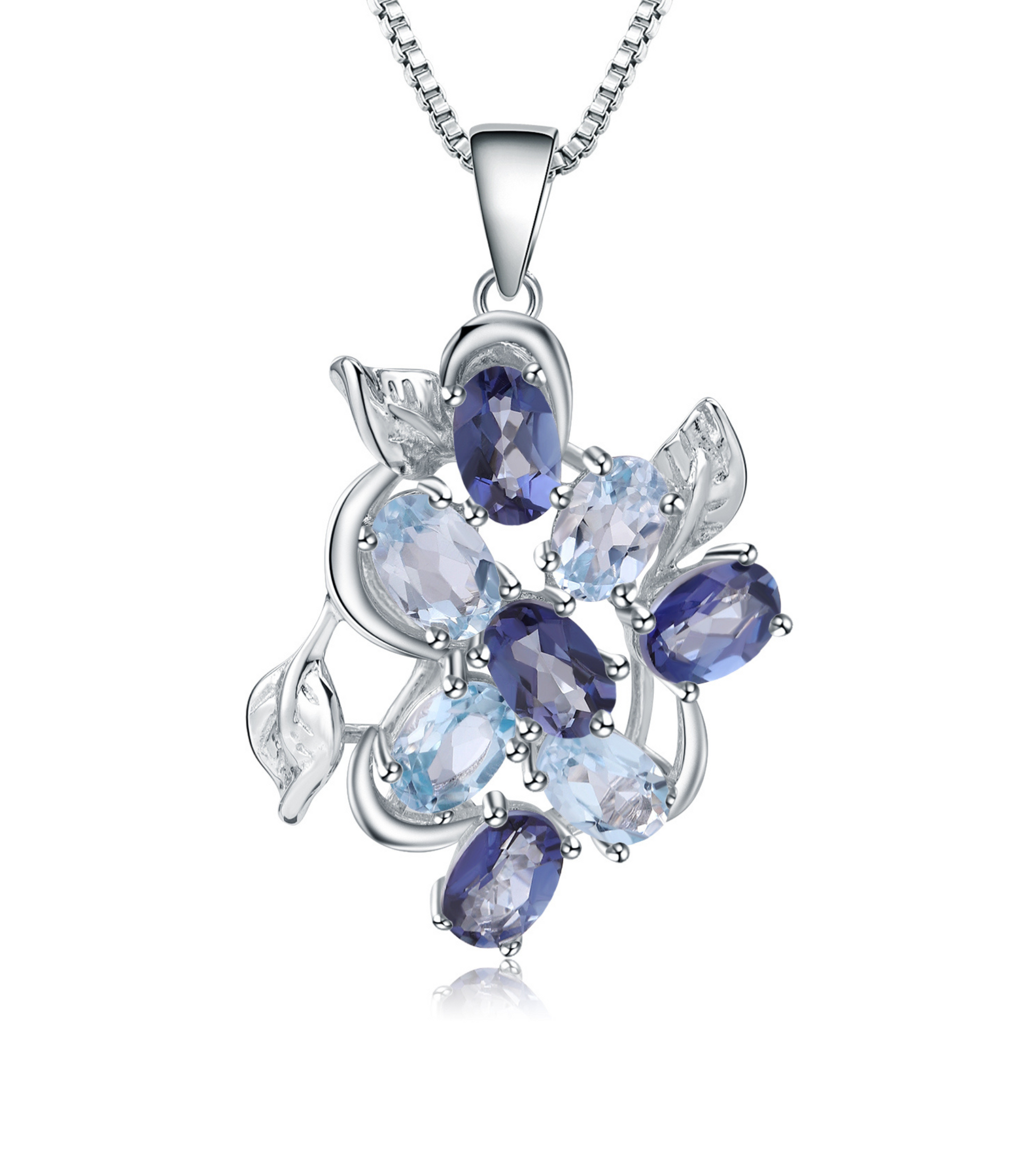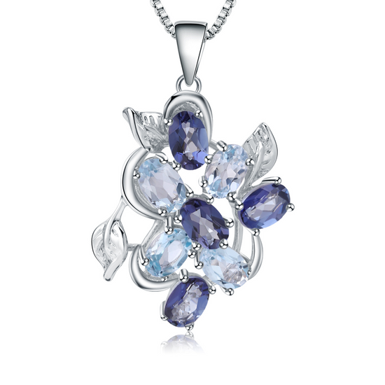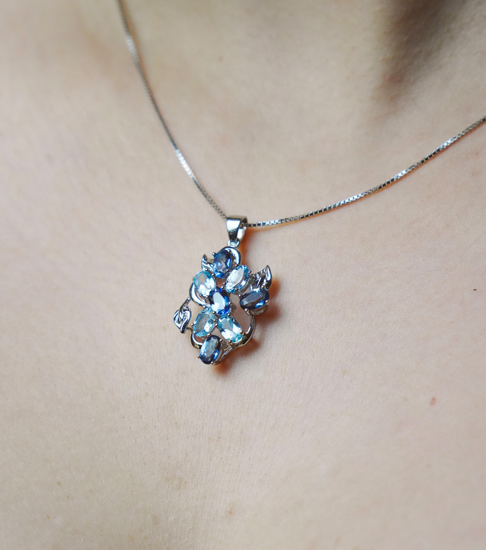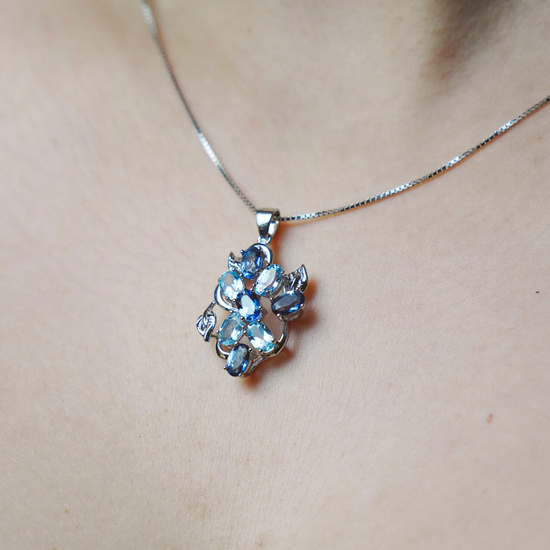 Collar Topacios Sky Blue y Cuarzos Místicos en Plata 925 y Baño de Oro Blanco de 18 kt.