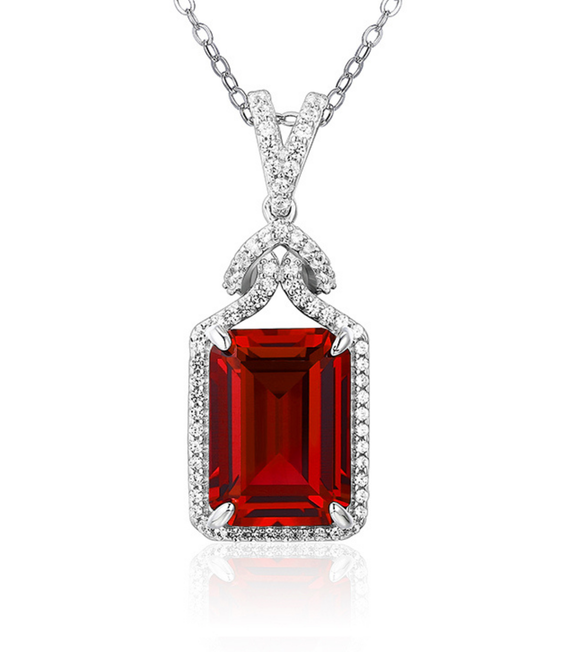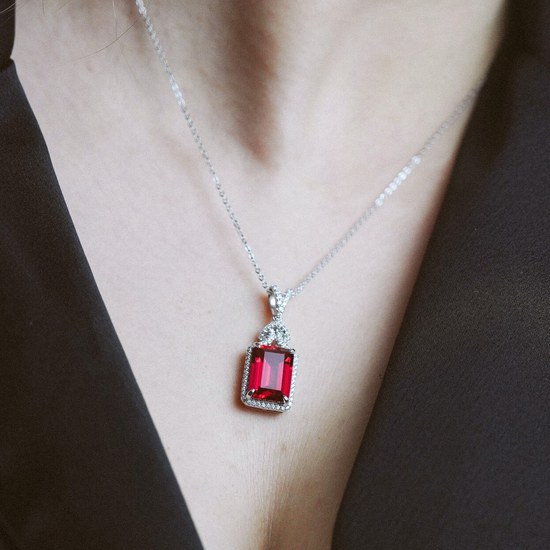 Collar Rubí Corindón y Zafiros Blancos en Plata 925 y Baño de Oro Blanco de 18 kt.