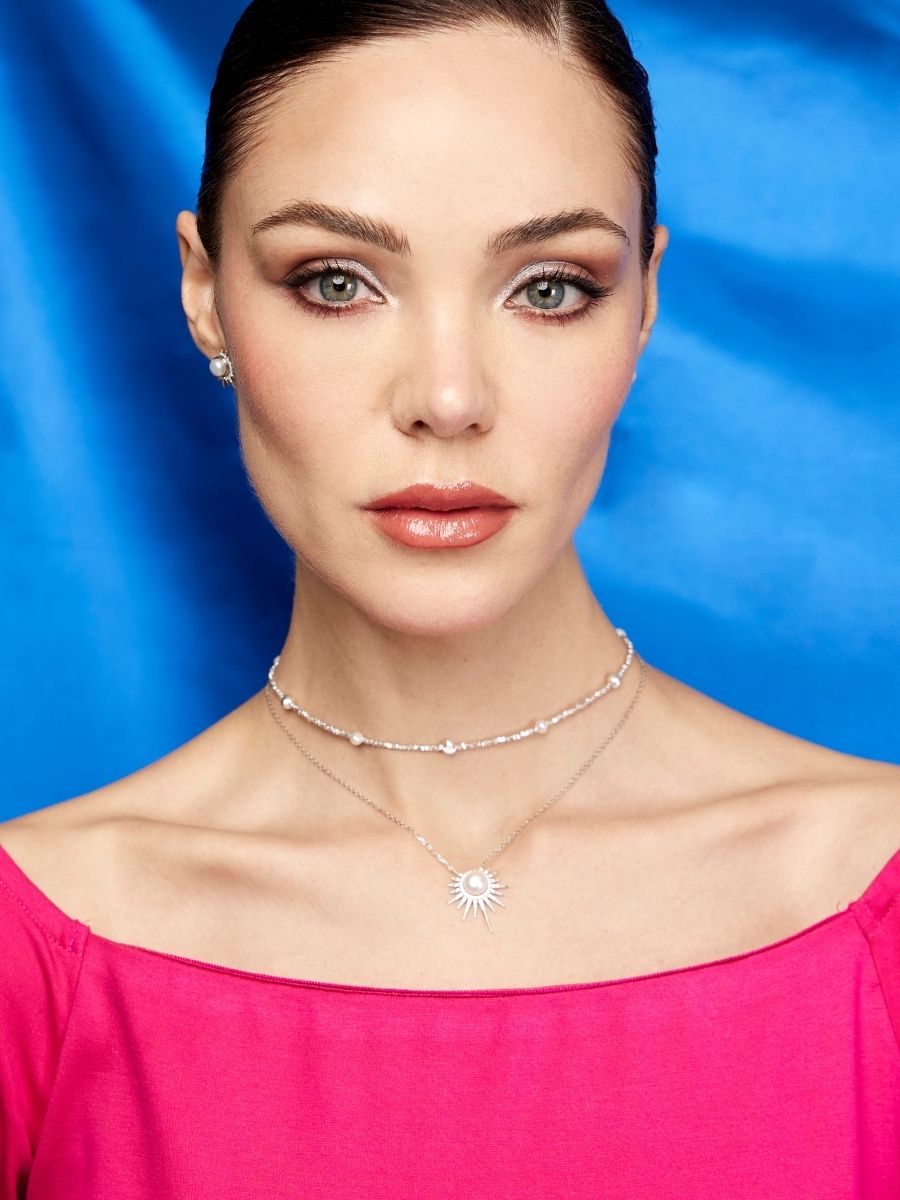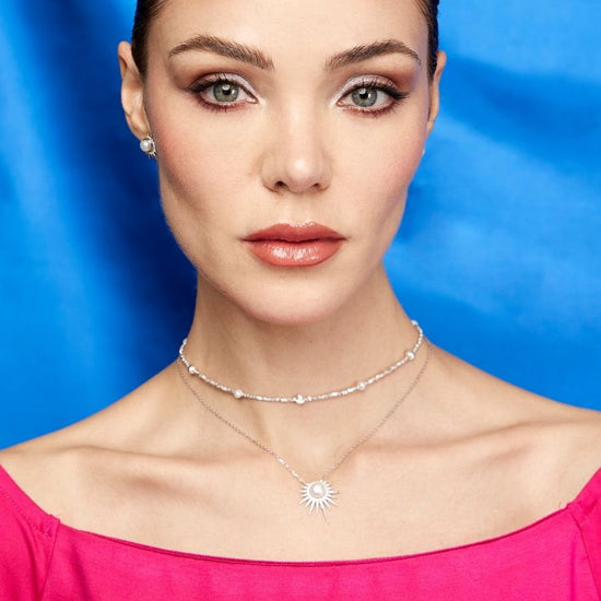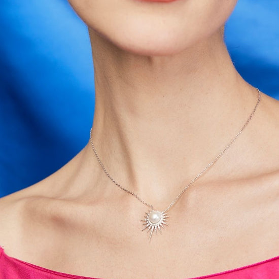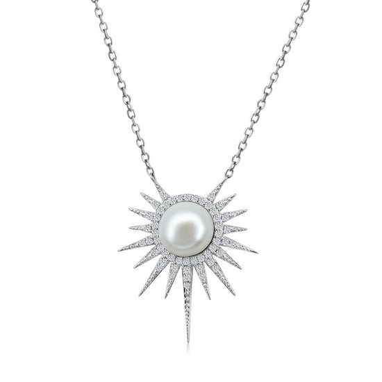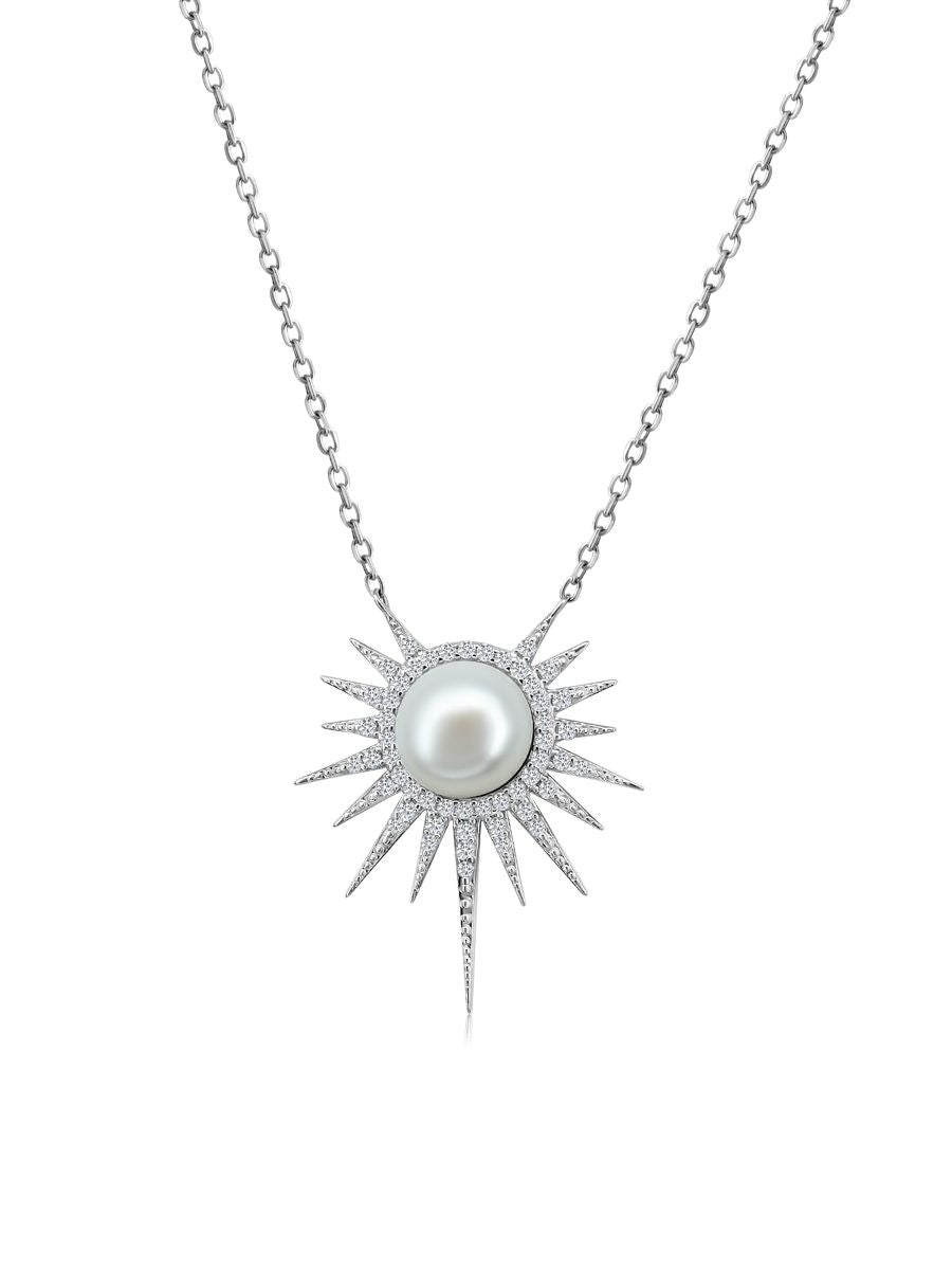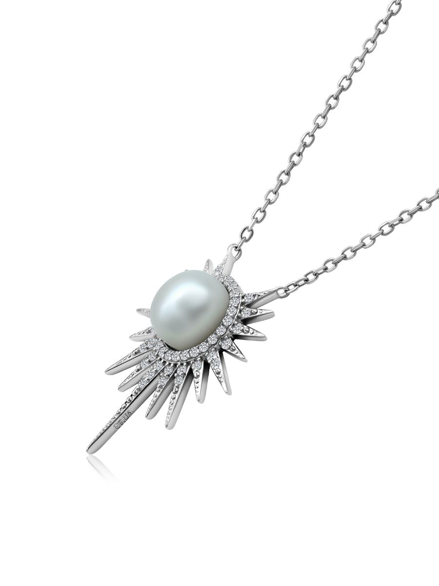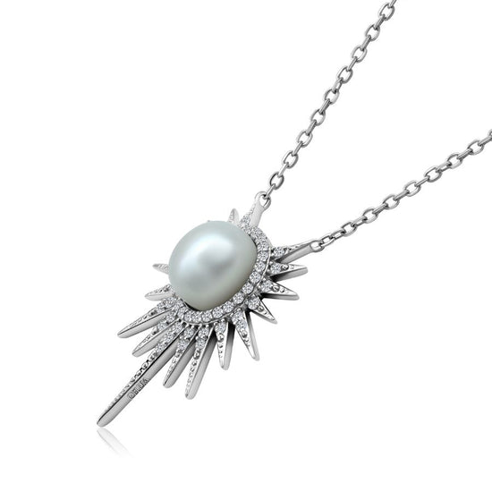 Collar Helios con Perla en Plata 925 y Baño de Oro Blanco de 18 kt.