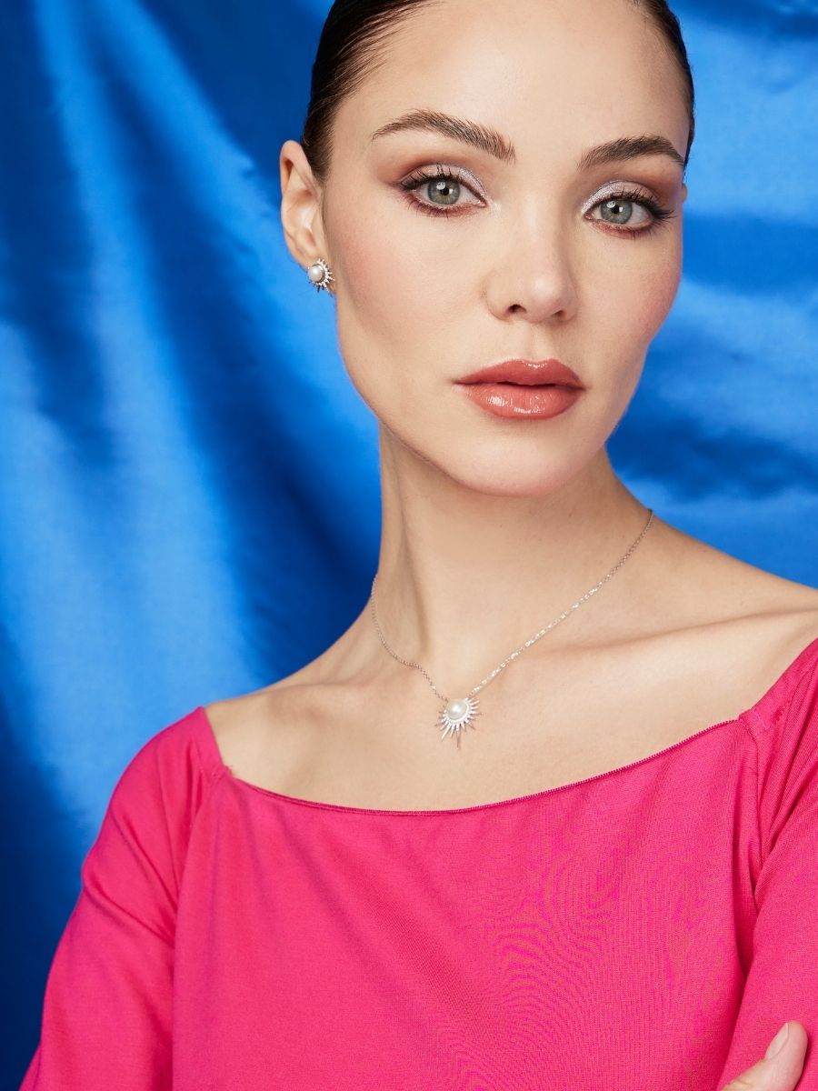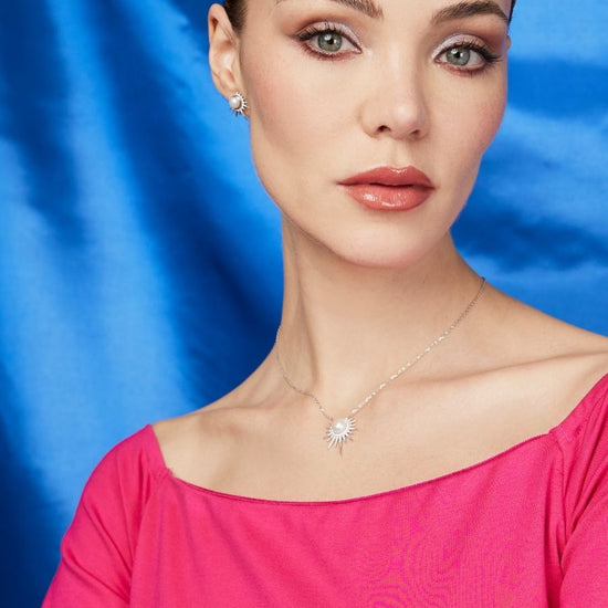 Un tributo al astro más brillante. Este diseño único captura la esencia del sol en su máxima expresión, con una perla majestuosa en el centro, símbolo de pureza y luz. A su alrededor, un círculo de zirconias 5A, la más alta calidad en su tipo, enmarca su resplandor, mientras sus rayos en movimiento, también iluminados con zirconias, evocan el fulgor infinito del firmamento.