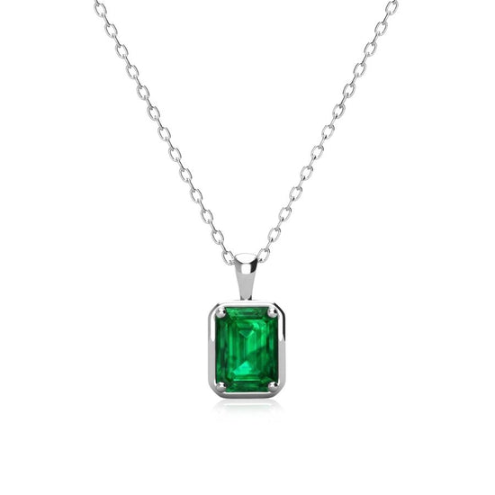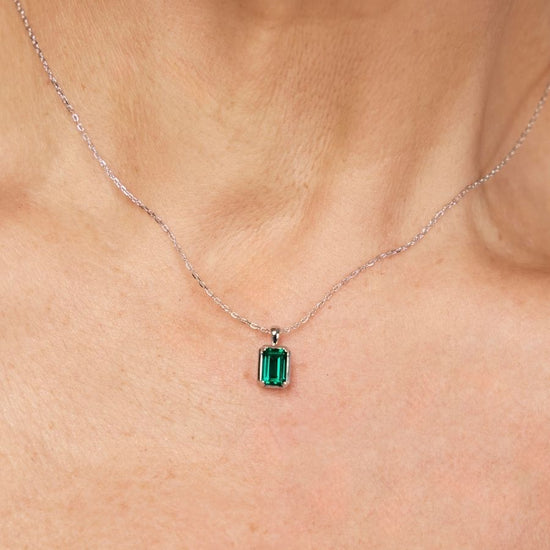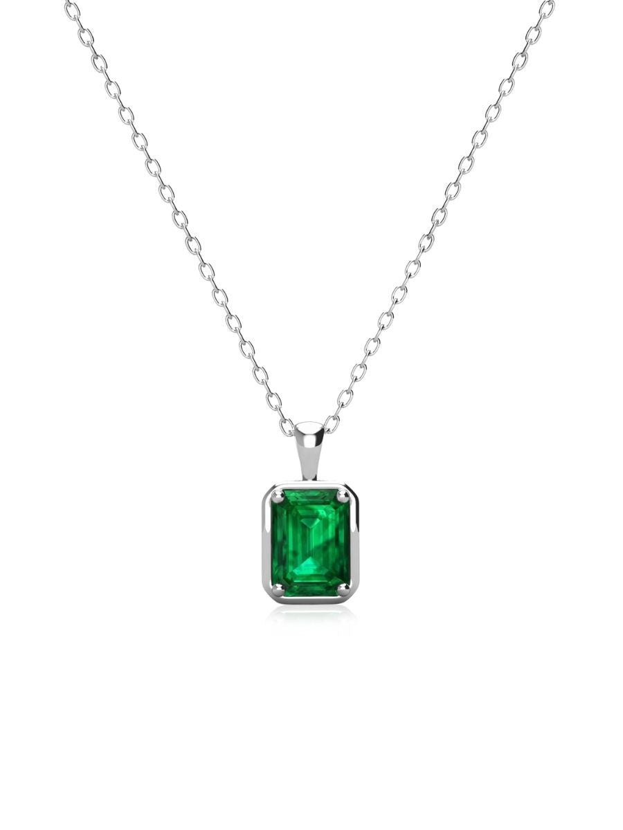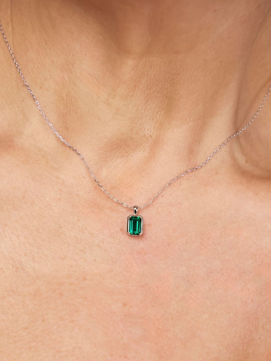 Un destello de luz en su forma más pura. Este collar, elaborado en plata ley 925 con baño de oro blanco de 18 kt, presenta una esmeralda en corte baguette, una piedra que irradia la energía y profundidad de un astro en el universo. Su diseño minimalista realza su belleza atemporal, convirtiéndolo en una pieza única que brilla con intensidad propia.